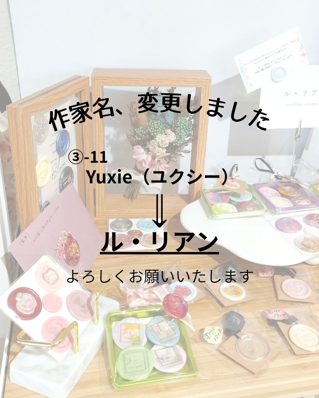こんにちは、くらぼです。とうとうお店の前の桜並木が葉桜になってしまいました。おかげで地面はピンク?の絨毯になっています。 さて、本日は作家様の改名と新商品のご案内です。③-11で出店されているシーリングスタンプのYuxi […]