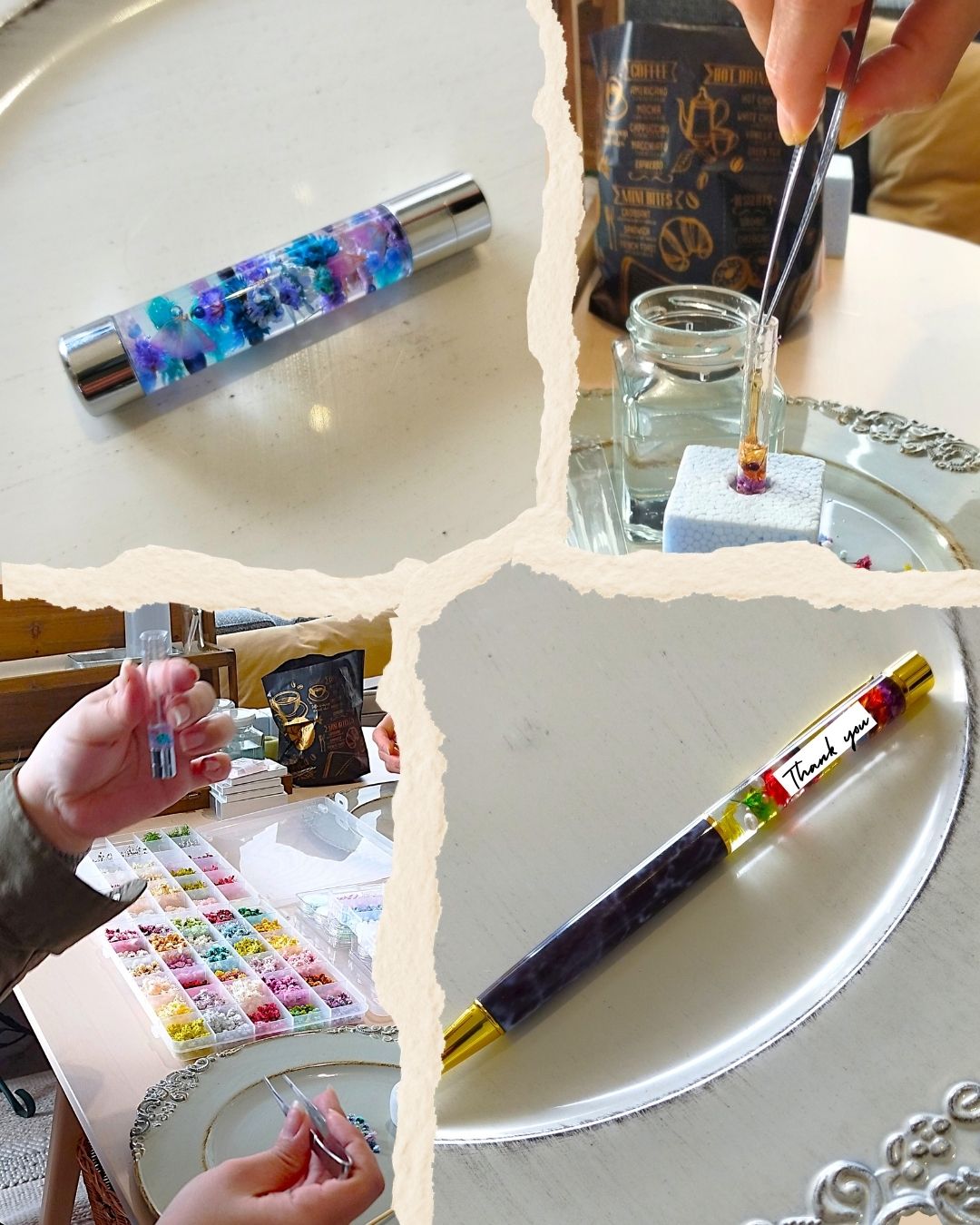 午後はご予約いただいたシャチハタ印でのハーバリウム体験と、当日参加の方がボールペンを製作してくださいました。