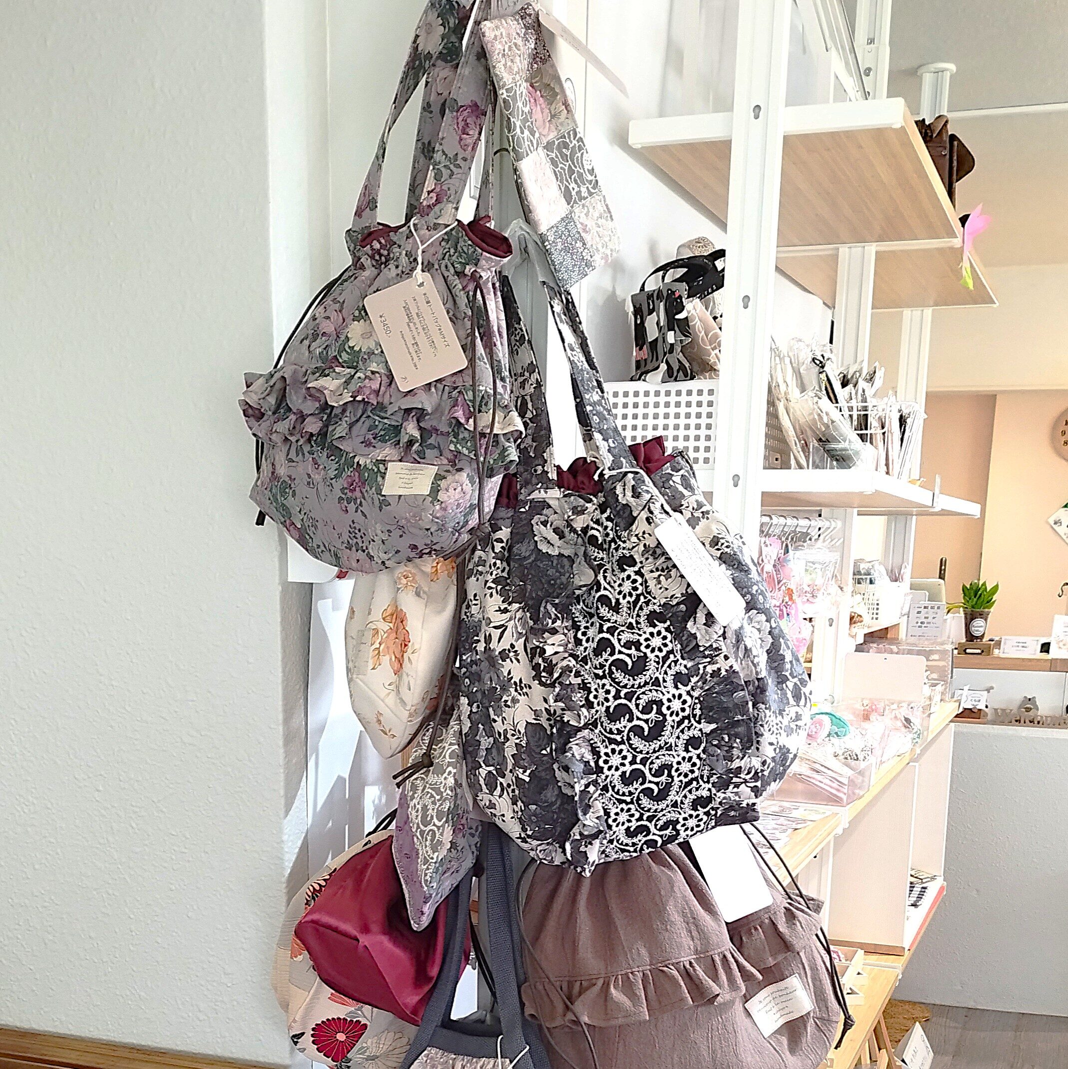 巾着タイプのバッグやショルダーバッグを製作されています。