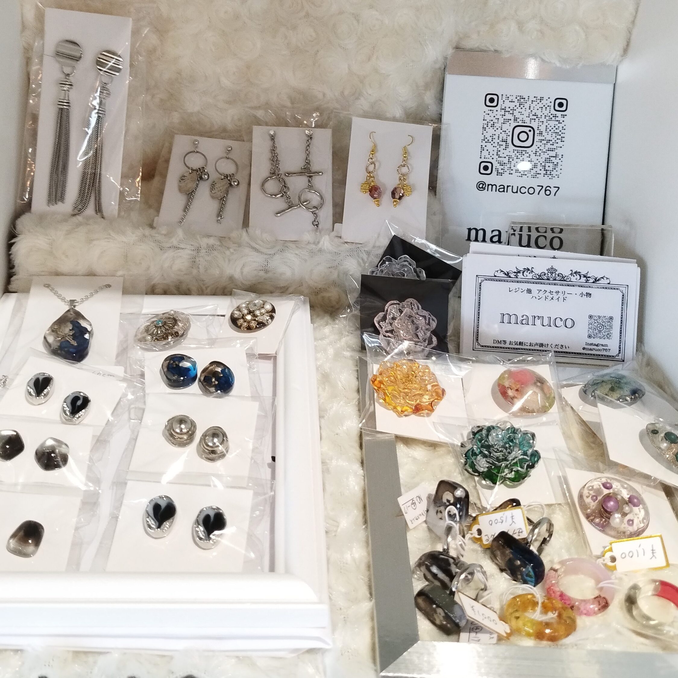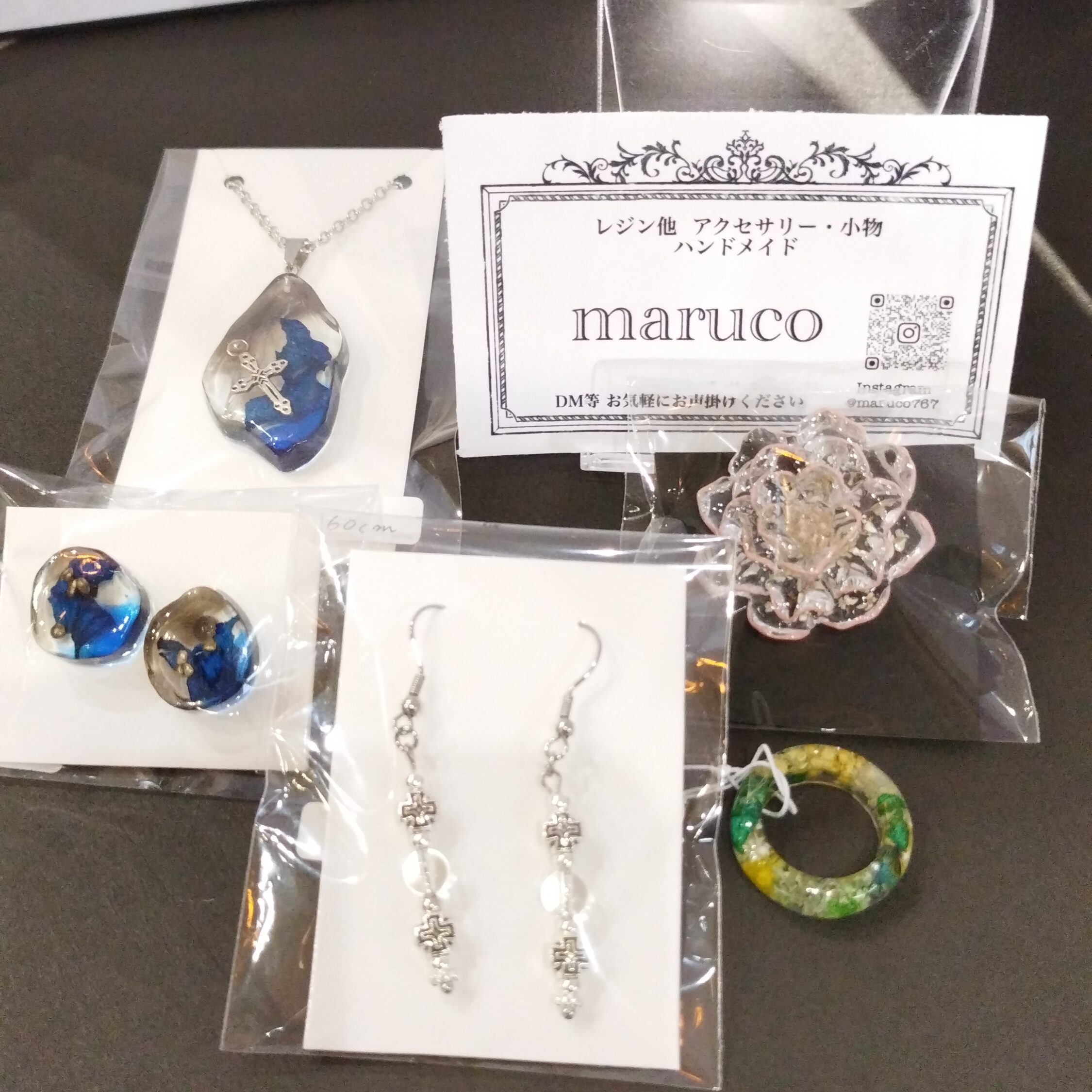 レジンアクセサリーを製作されています。基本シルバーカラーの金具を使用されているので、男性にもご使用いただけるかと思います。パートナーとお揃いのアクセサリーはいかがですか?