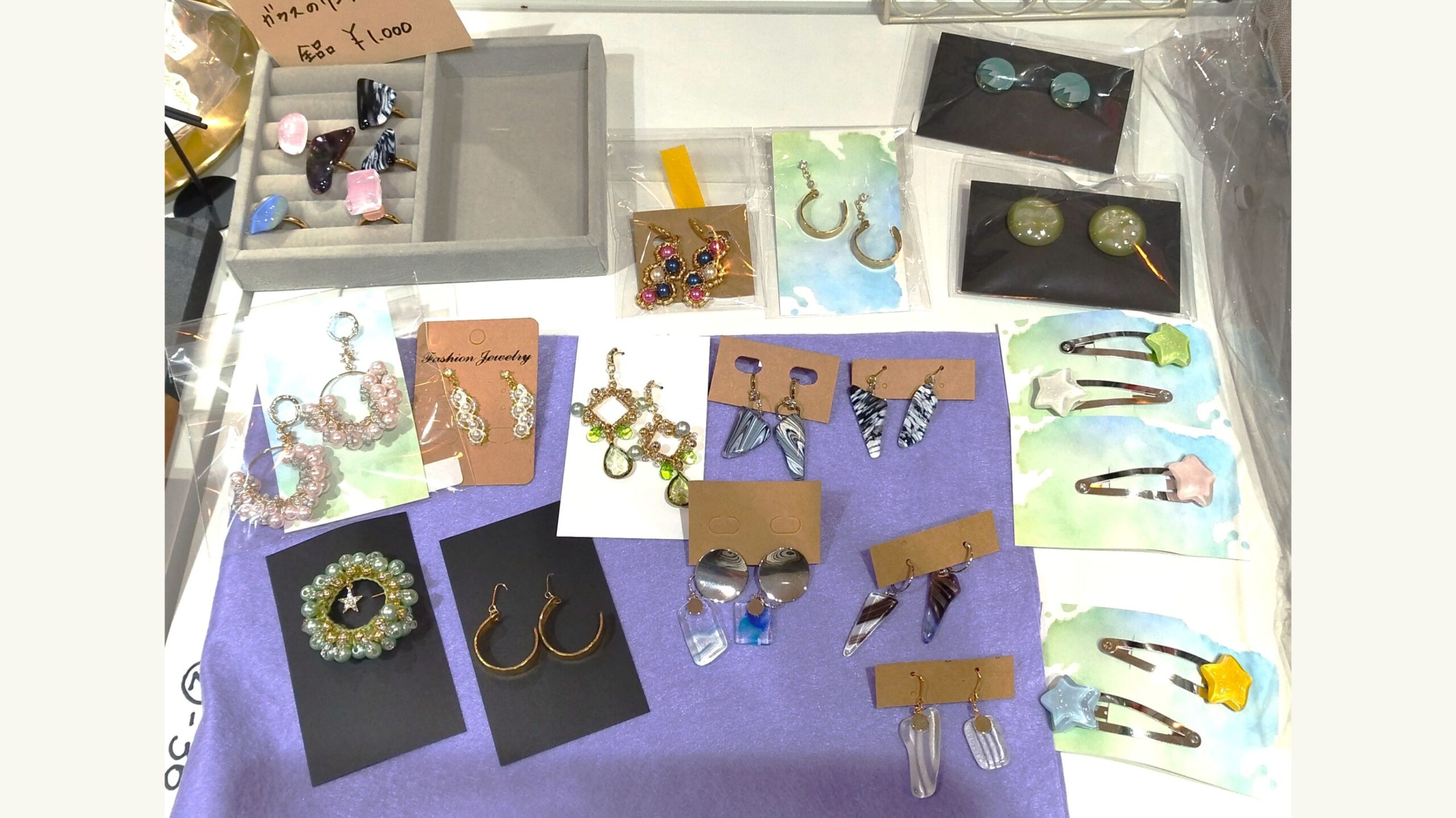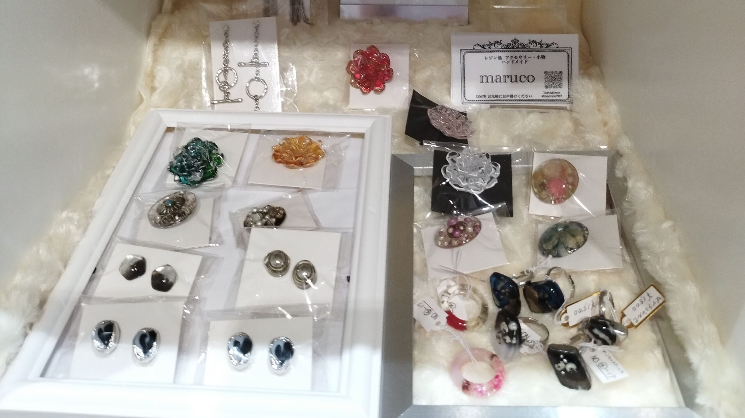 レジンアクセサリーを製作されています。基本シルバーカラーの金具を使用されているので、男性にもご使用いただけるかと思います。パートナーとお揃いのアクセサリーはいかがですか?