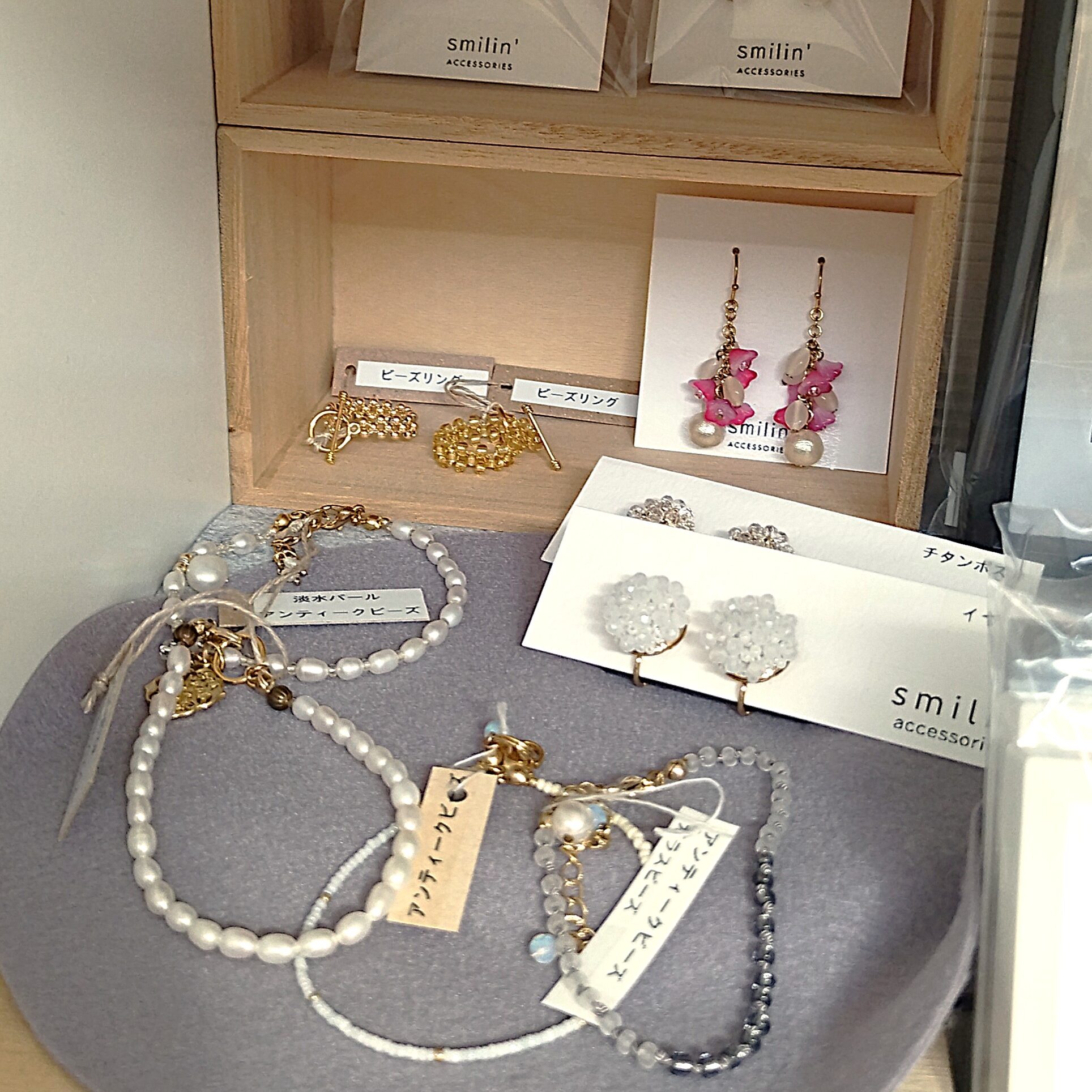 コットンパールやアンティークビーズを使ったアクセサリーを製作されています。アマチュアフォトグラファーであるご主人の作品も販売中です。