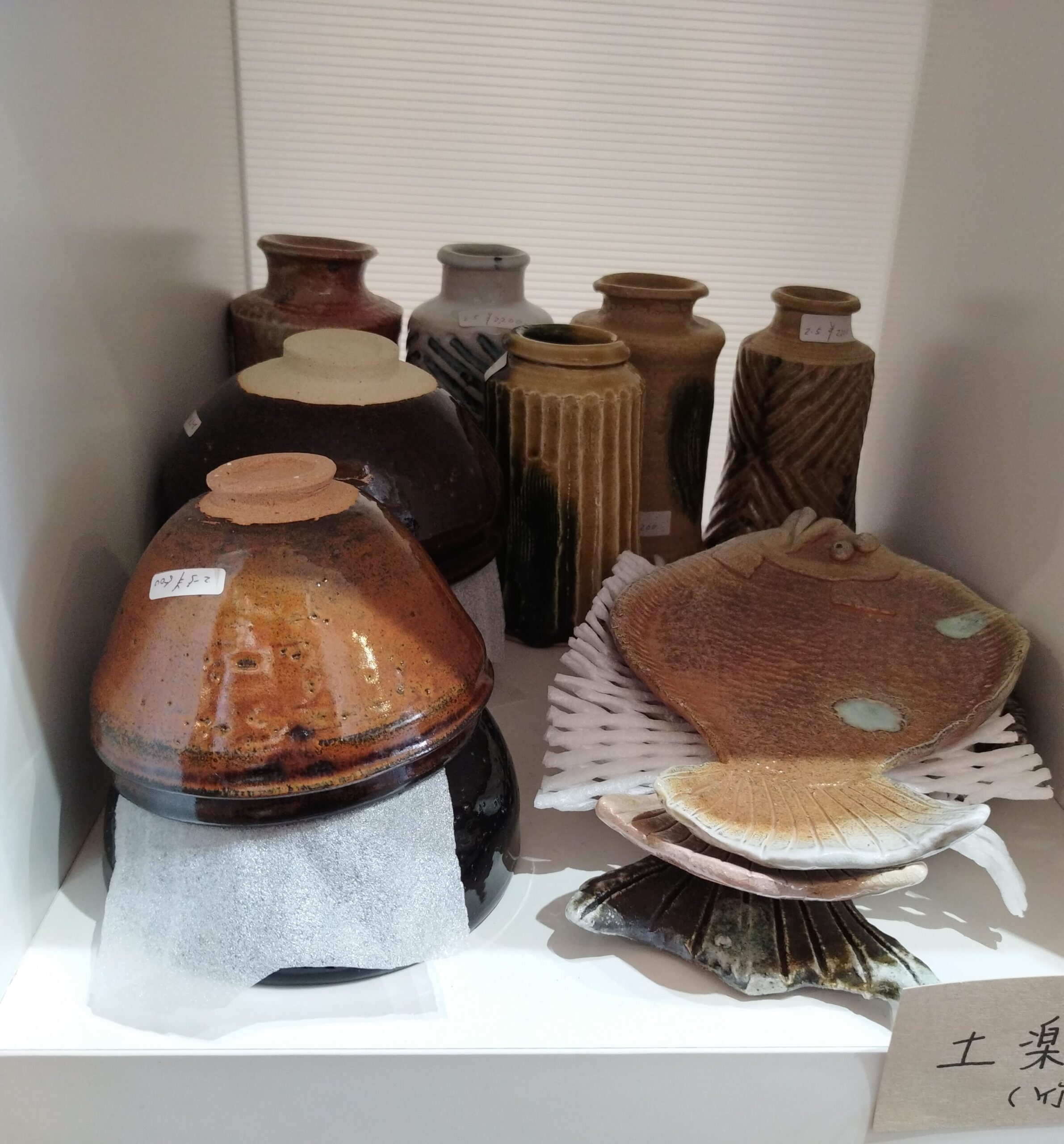 茶碗や、花瓶などを製作されている陶芸作家様です。個性的なお皿もあります。